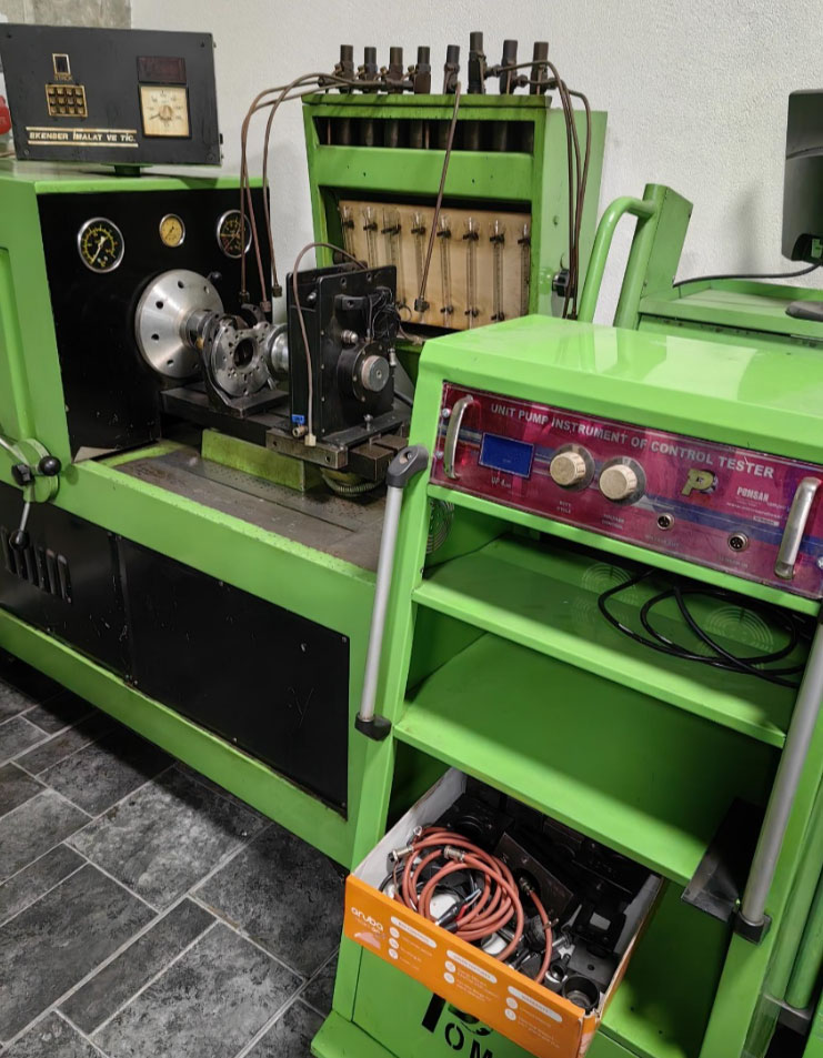 UNIT INJECTOR AND PUMP TEST SIMULATOR AND CAMBOX POMSAN WITH TRADITIONAL MECHANICAL PUMP TEST BENCH